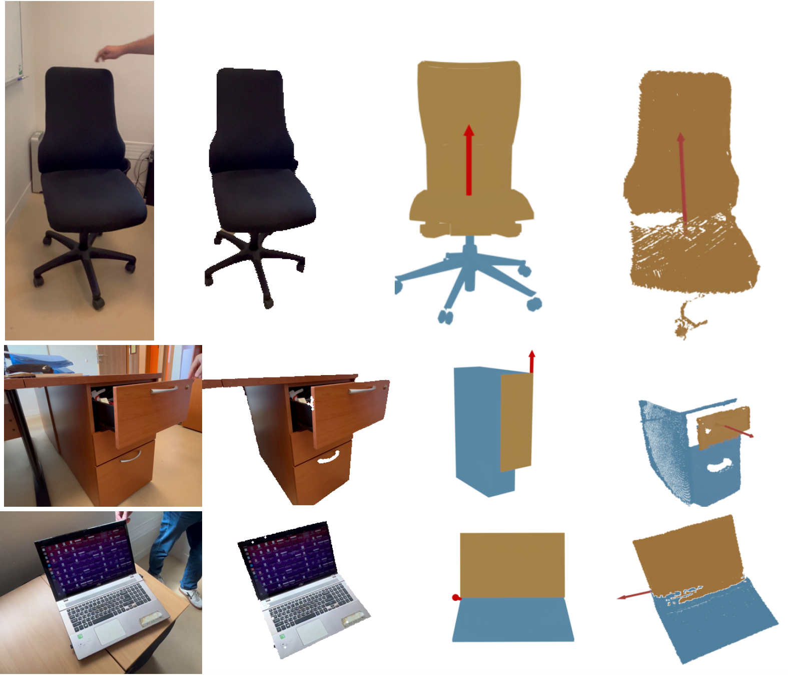 Trained entirely on synthetic data, our method achieves strong generalization to real-world articulated objects. It works directly on casually captured videos, enabling practical, scalable, and real-time articulated object understanding in dynamic environments.